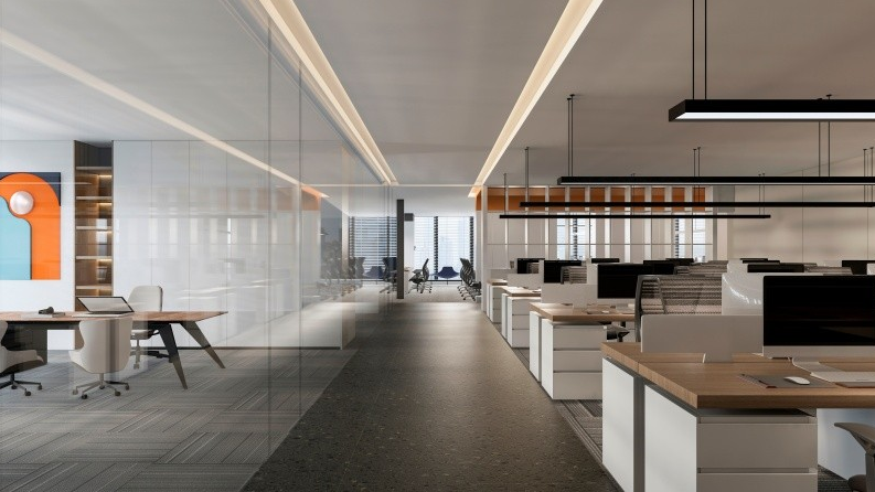 將固定辦公室改為玻璃隔斷或可移動(dòng)隔斷,保持私密性同時(shí)增強(qiáng)通透性。